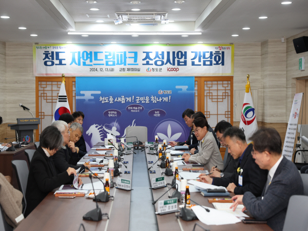 (경북=NSP통신) 김대원 기자 = 청도군(군수 김하수)은 13일 군청 제1회의실에서 김하수 청도군수를 비롯해 청도군 간부 공무원과 사업관계자 5명이 참석한 가운데 청도 자연드림파크 산업단지 조성 계획에 대해 실수요자인 아이쿱과 간담회를 개최했다.
