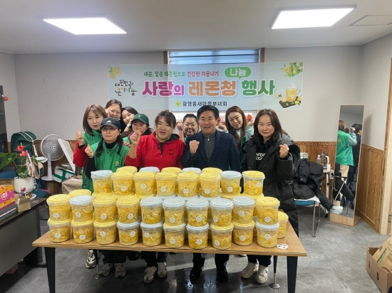 (전남=NSP통신) 김성철 기자 = 광영동새마을부녀회(회장 안영숙)가는 지난 14일 광영동 관내 경로당 이용 어르신 및 취약계층을 위해 수제 레몬청 나눔 행사를 개최했다고 밝혔다.