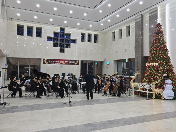 연주에는 클랑챔버오케스트라 연주단이 여러 현악기가 내는 아름다운 선율과 소프라노의 음색이 더해져 환자뿐만 아니라 함께한 직원들의 몸과 마음까지 치유하는 시간이 됐다.