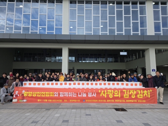 (전남=NSP통신) 김성철 기자 = 광양시는 매년 사랑의 김장 나눔행사와 고객 감사 행사를 통해 이웃사랑을 실천하고 있는 광양상인연합회(회장 신영봉)가 지난 15일 광양매일시장에서 ‘사랑의 김장 나누기’ 행사를 개최했다고 밝혔다.