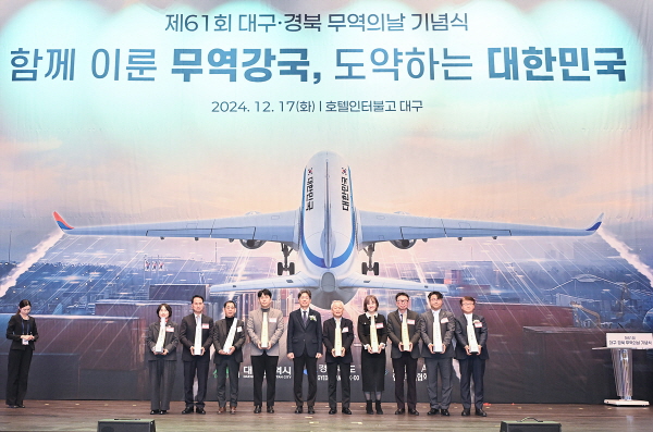 (경북=NSP통신) 김대원 기자 = 대구광역시와 경상북도, 한국무역협회 대구경북지역본부는 17일 호텔 인터불고(만촌)에서 지역의 수출 기업과 수출유관기관 관계자 250여 명이 참석한 가운데 ‘제61회 대구·경북 무역의 날 기념식’을 개최해 수출의 탑을 달성한 기업과 수출 유공 포상 기업인들을 격려했다.