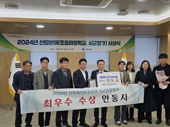 (경북=NSP통신) 김오현 기자 = 안동시(시장 권기창)는 18일 경상북도 주관 ‘2024년 산림레저관광분야 종합평가’에서 최우수상을 수상하는 쾌거를 거뒀다.