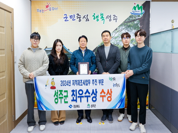 (경북=NSP통신) 김대원 기자 = 성주군은 2024년 지적재조사사업을 적극적·창의적 자세로 추진한 성과를 인정받아 ‘우수시군 평가 1위’로 최우수 기관 표창을 수상했다.