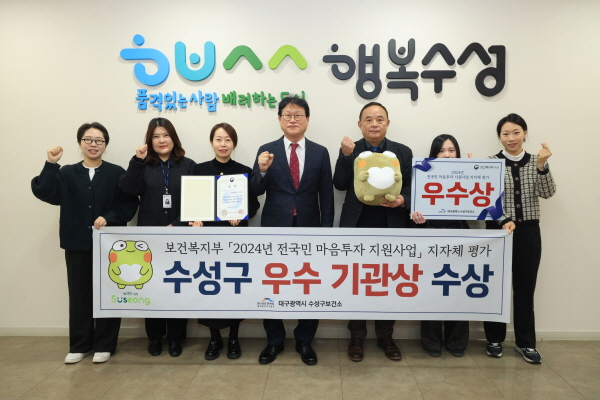 (경북=NSP통신) 김대원 기자 = 대구 수성구(구청장 김대권)는 보건복지부가 주관한 ‘2024년 전국민 마음투자 지원사업’ 지자체 평가에서 우수 지자체로 선정됐다고 18일 밝혔다.