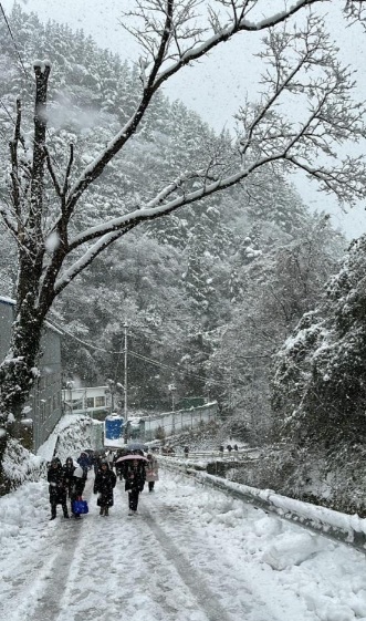 2020년 개교 해에 학교 진입로에 설치된 열선도 17일 폭설에 무용지물이었다.