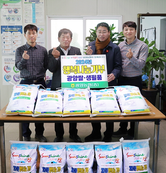 (전남=NSP통신) 김성철 기자 = 광양농협(조합장 허순구)이 지난 18일‘2024년 행복나눔 기부행사’를 펼치며 사회공헌 활동에 앞장서며 따듯한 온정 나누기에 나섰다고 밝혔다.