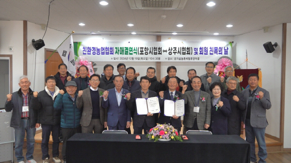 (경북=NSP통신) 조인호 기자 = 포항시친환경농업협회(회장 권대혁)는 상주시 은자골농촌체험휴양마을에서 포항시협회 회원 30여 명과 상주시협회 회원 100여 명이 참석한 가운데 ‘2024 포항시친환경농업인 역량강화 교육 및 자매결연 협약식’을 개최했다.