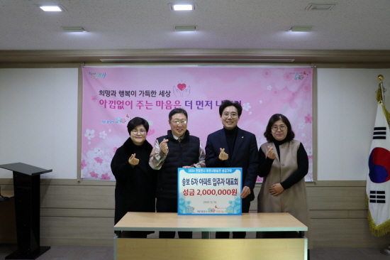 (전남=NSP통신) 김성철 기자 = 광양송보파인빌6차아파트 입주자대표회(회장 김장권)는 지난 19일 이웃사랑 실천의 일환으로 광양시사랑나눔복지재단(이사장 김재경)에 성금 200만 원을 전달했다.