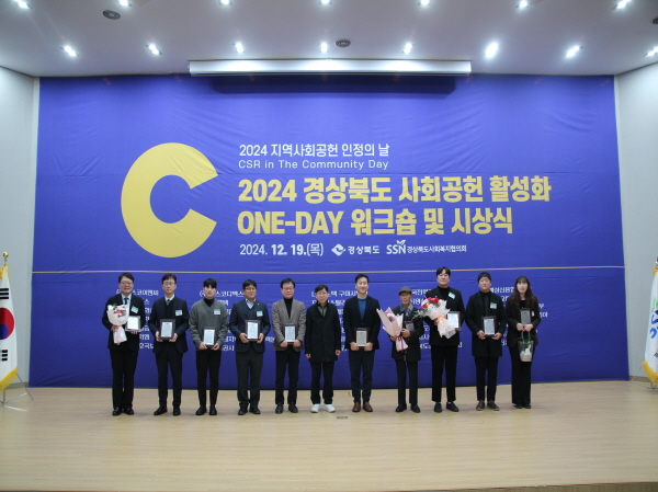 (경북=NSP통신) 조인호 기자 = 경상북도는 지난 19일 안동그랜드호텔에서 2024 지역사회공헌 인정의 날(12.1.)을 기념해 ‘2024 경상북도 사회공헌 활성화 워크숍 및 시상식’을 개최했다.