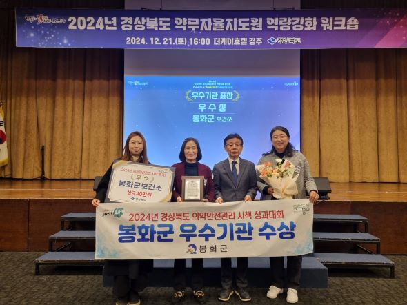 봉화군은 지난 21일 경주시 더케이 호텔에서 열린 경상북도 주관 의약안전관리 시책 성과대회에서 우수기관상을 수상했다. (사진 = 봉화군)