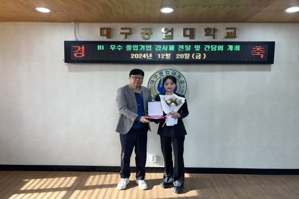 (경북=NSP통신) 김대원 기자 = 대구공업대학교(총장 이별나) 창업보육센터는 지난 20일 ‘우수 졸업기업 감사패 전달식 및 간담회’를 개최했다.