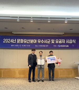 NSP통신-영덕군이 지난 19일 경상북도가 주최하는 2024년 경상북도 문화유산 분야 평가 시상식에서 우수상을 받았다. (사진 = 영덕군)