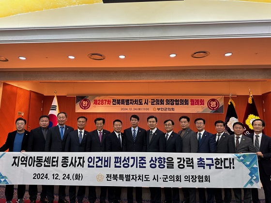 24일 진안군의회에 따르면 이날 부안군에서 열린 전북자치도시군의회의장협의회 제287차 월례회에서 동창옥 의장이 제안한 ‘지역아동센터 종사자 처우개선 건의안’이 만장일치로 채택됐다.