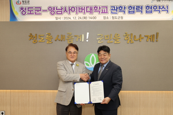 (경북=NSP통신) 김대원 기자 = 청도군(군수 김하수)은 24일 지역사회 발전에 필요한 전문 인력 양성을 목표로 영남사이버대학교와 관학 협력 강화를 위한 협약을 체결했다.