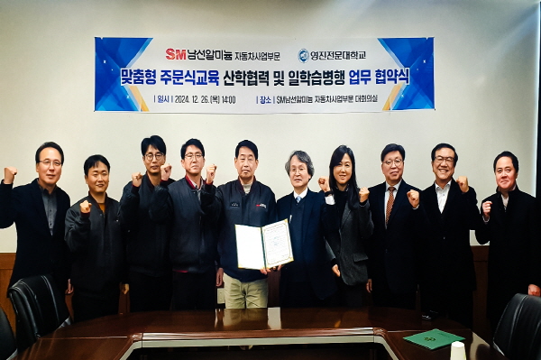 (경북=NSP통신) 김대원 기자 = 영진전문대학교(총장 최재영)와 SM남선알미늄 자동차사업부문(대표이사 정순원)이 맞춤형 주문식교육과 일학습 병행을 기반으로 전문인력 양성 및 산학협력을 강화할 협약을 체결했다.