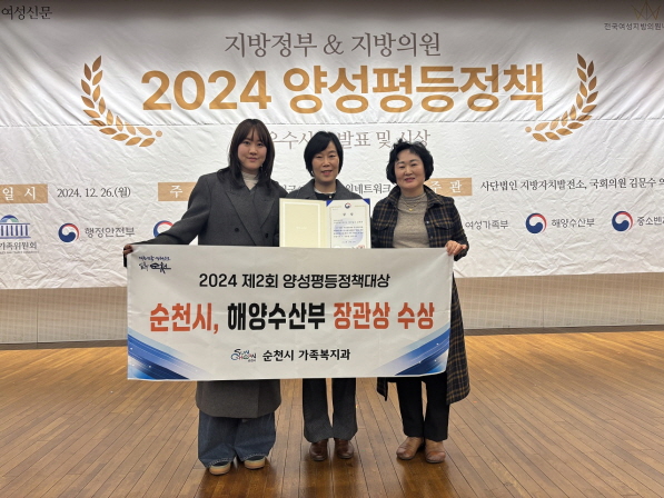 (전남=NSP통신) 남정민 기자 = 전남 순천시(시장 노관규)는 최근 2024년 제2회 양성평등정책대상에서 우수지자체로 선정되어 해양수산부 장관상을 수상했다고 27일 밝혔다.