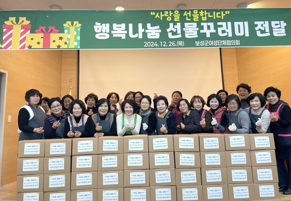 (전남=NSP통신) 남정민 기자 = 전남 보성군여성단체협의회(회장 김미숙)는 최근 보성군청소년문화의집 다목적홀에서 2024년 연말을 맞이해 관내 취약계층 110가구에 ‘행복 나눔 선물꾸러미’를 전달하는 봉사활동을 진행했다고 27일 밝혔다.