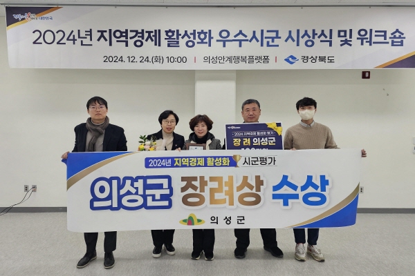 (경북=NSP통신) 조인호 기자 = 의성군(군수 김주수)은 지난 24일 경상북도가 주최한 ‘2024년도 지역경제 활성화 평가’에서 지역경제 활성화에 기여한 노력을 인정받아 장려상을 수상했다.