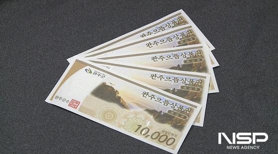 (전북=NSP통신) 김광석 기자 = 전북자치도 완주군이 지역 내 통용되는 완주사랑상품권 발행액 및 구매한도를 1월 한 달 한시적으로 확대한다.