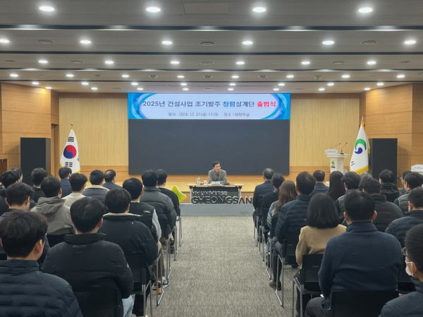 (경북=NSP통신) 김대원 기자 = 경산시(시장 조현일)는 지난 27일 시청 대회의실에서 건설사업 관계자 160여 명이 참석한 가운데 ‘2025년 건설사업 조기발주 청렴설계단 출범식’을 개최했다.
