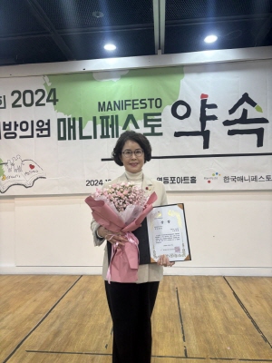 (경북=NSP통신) 김대원 기자 = 문경시의회 박춘남 의원(문경시 ‘라’ 선거구, 호계, 점촌1·3동)이 한국매니패스토실천본부가 주관한 ‘제16회 2024 지방의원 매니페스토 약속대상’에서 ‘좋은 조례 분야 최우수상’을 수상했다.