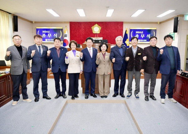 이날 종무식에는 지역사회 발전 및 주민복리증진에 기여한 각 분야별 유공 시민과 의정 활동을 적극적으로 수행한 공무원에 대한 표창을 수여하고 2024년 의회 운영 성과 보고, 의정활동 영상, 송년사 등의 순서로 진행됐다.
