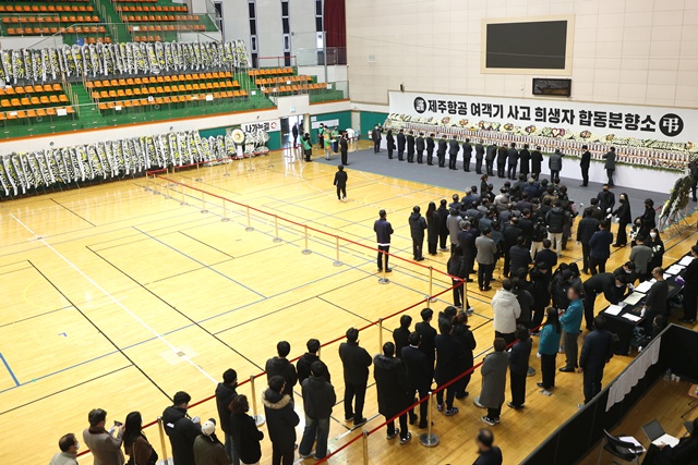(전남=NSP통신) 오환주 기자 = 전남 무안군은 제주항공 여객기 사고와 관련 지난달 30일 무안스포츠파크에 설치한 희생자 합동분향소에 많은 추모객의 발걸음이 이어지고 있다.