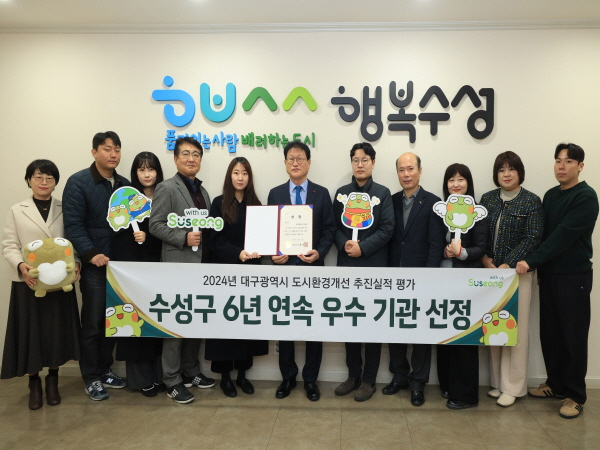 (경북=NSP통신) 김대원 기자 = 대구 수성구(구청장 김대권)는 대구시 주관 ‘2024년 도시환경개선 추진실적 평가’에서 우수기관으로 선정됐다고 지난 2024년 12월 31일 밝혔다.