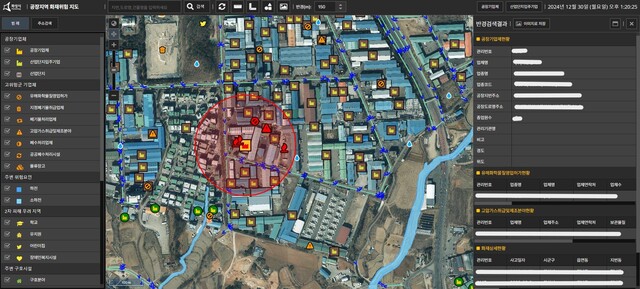 화재위험지도는 공간정보시스템을 활용해 공장 및 인근의 위험 요소 등 총 25개 분야, 2만6742건의 데이터를 포함하고 있다. 화재 위치 반경의 화재 취약 위험 요소 정보 제공 및 신속한 상황 판단을 통해 즉각적인 대응 및 복구 지원 계획 수립이 가능해 2차피해 방지 등 골든 타임 확보에 기여할 수 있을 것으로 기대된다.