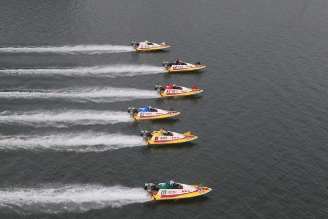 NSP통신-미사 경정장에서 경정선수들이 물보라를 일으키며 질주하고 있다. (사진 = 국민체육진흥공단)