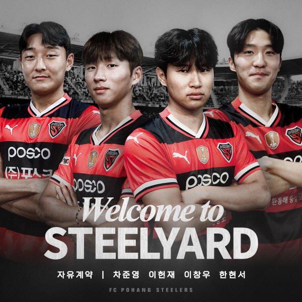 지난 7일 포항스틸러스에 입단한 자유계약 신인은 수비수 한현서·차준영·이창우와 공격수 이헌재다.