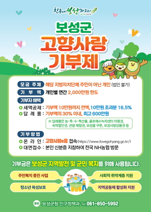이러한 목표 달성을 위해 보성군은 지자체 간 교차 기부, 각종 행사 참여 홍보, 가을맞이 및 연말 이벤트 등 다양한 방법으로 기부 참여를 유도했다.