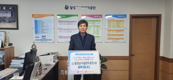 (경북=NSP통신) 김대원 기자 = 달성군시설관리공단(이사장 김정화)은 9일 보건복지부와 한국보건복지인재원 공동 기획으로 진행 중인 ‘인구문제 인식개선 릴레이 캠페인’에 동참했다.