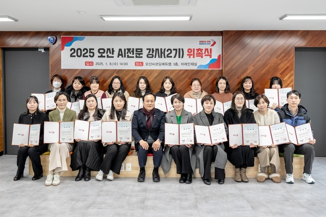 (경기=NSP통신) 조현철 기자 = 경기 오산시(시장 이권재)는 8일 오산AI코딩에듀랩 3층 미래인재실에서 ‘2025년 오산 AI전문 강사 2기 위촉식’을 개최했다.