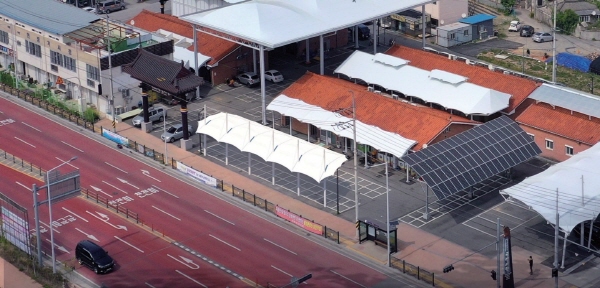 경주시가 올해 전통시장 현대화 등에 55억 원 예산을 투입해 자생력 강화에 나선다. 지난해 완공된 양북시장 비가림시설 설치 사진 (사진 = 경주시)