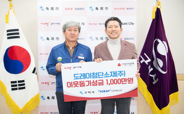 (경북=NSP통신) 조인호 기자 = 구미시는 지난 13일 도레이첨단소재(대표이사 김영섭)로부터 이웃돕기 성금 1000만 원을 전달받았다.