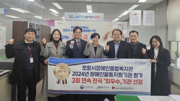 (경북=NSP통신) 조인호 기자 = 포항시장애인종합복지관이 2020년, 2022년도에 이어 3회 연속 2024년도 국민연금공단에서 실시한 장애인활동지원기관 평가에서 전국 최우수 기관으로 선정됐다.
