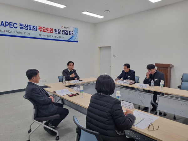 (경북=NSP통신) 조인호 기자 = 경상북도는 지난 16일 APEC 준비지원단 사무실에서 김학홍 행정부지사 주재로 ‘2025년 APEC 정상회의’ 주요현안 현장 점검회의를 개최했다.