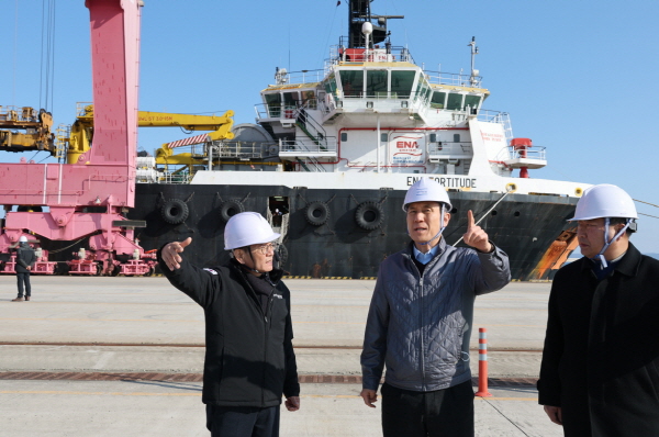 이강덕 포항시장은 보조항만으로서의 경험치 축적을 위해 그동안 긴밀히 협의해 온 결과로 이뤄진 첫 시추 관련 작업 현장을 직접 찾아 보급선을 둘러보고 한국석유공사와 항만 관계자들을 격려했다.