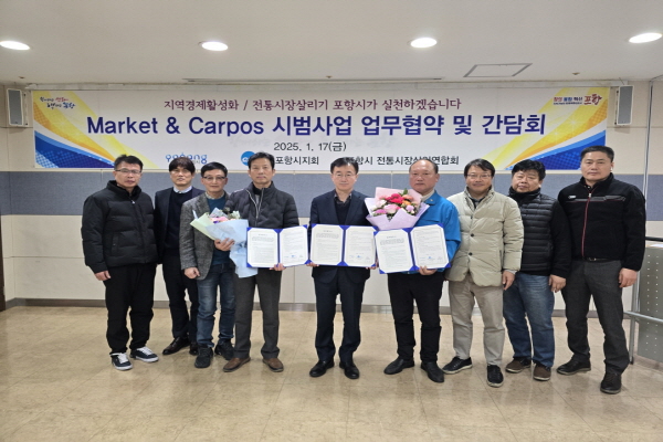 NSP통신-지난 17일 포항시와 경북자동차전문정비사업조합 포항시지회, 포항시 전통시장상인연합회가 Market&Carpos 시범사업 상생 업무협약을 체결했다. (사진 = 포항시)
