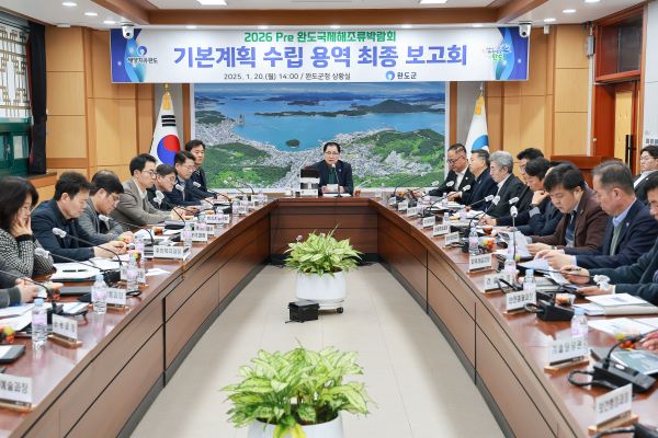 (전남=NSP통신) 김현 기자 = 전남 완도군은 지난 20일 군청 상황실에서 ‘2026 pre 완도국제해조류박람회’ 기본계획 수립 용역 최종 보고회를 개최했다.