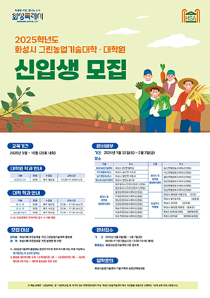 (경기=NSP통신) 조현철 기자 = 경기 화성시(시장 정명근)가 화성 농업을 이끌어갈 유능한 인재를 발굴하고 집중 교육하기 위한 ‘2025년도 그린농업기술대학(원)’ 신입생을 모집한다.