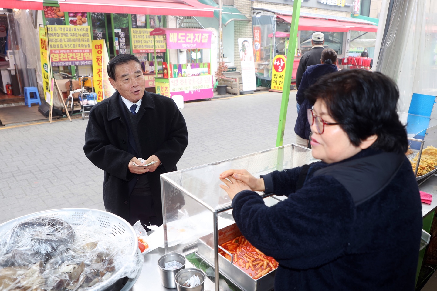(경기=NSP통신) 조현철 기자 = 이재식 경기 수원시의회 의장이 21일 설 명절을 앞두고 지역경제 활성화와 상인들과의 소통을 위해 정자시장을 방문했다.