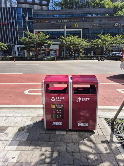 해당 장소엔 주황색의 일반쓰레기통과 녹색의 재활용품통 등 2개가 1조로 구성돼 설치된다.