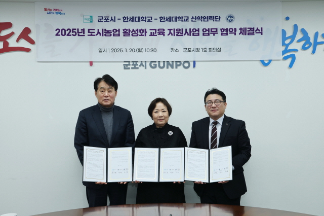 (경기=NSP통신) 정희순 기자 = 경기 군포시(시장 하은호)는 지난 20일 한세대학교 및 한세대학교 산학협력단과 군포시 도시농업 활성화 교육 지원을 위한 업무협약을 체결했다.