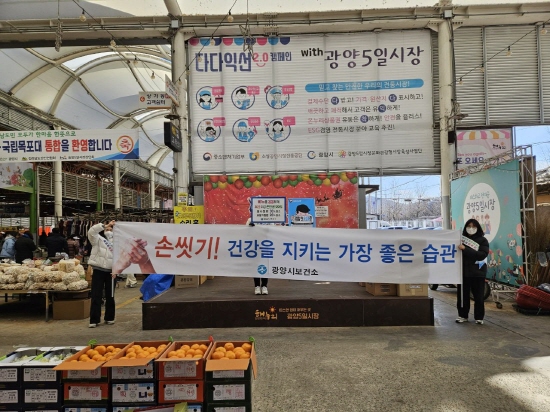 (전남=NSP통신) 김성철 기자 = 광양시는 지난 16일~17일 양일간 광양읍5일장, 중마시장, LF스퀘어 등 다중이용시설에서 손 씻기 캠페인을 펼치며 시민들에게 최근 전국적으로 유행하고 있는 겨울철 감염병에 대한 주의를 당부했다고 밝혔다.