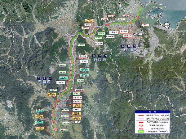 이번 정비사업은 형산강 본류에서 제방 보강 49.8㎞, 퇴적토 준설 1360㎥, 교량 재가설 7곳 등을 통해 내수 침수 피해를 줄이고 홍수 예방 효과를 극대화하는 것을 목표로 한다.