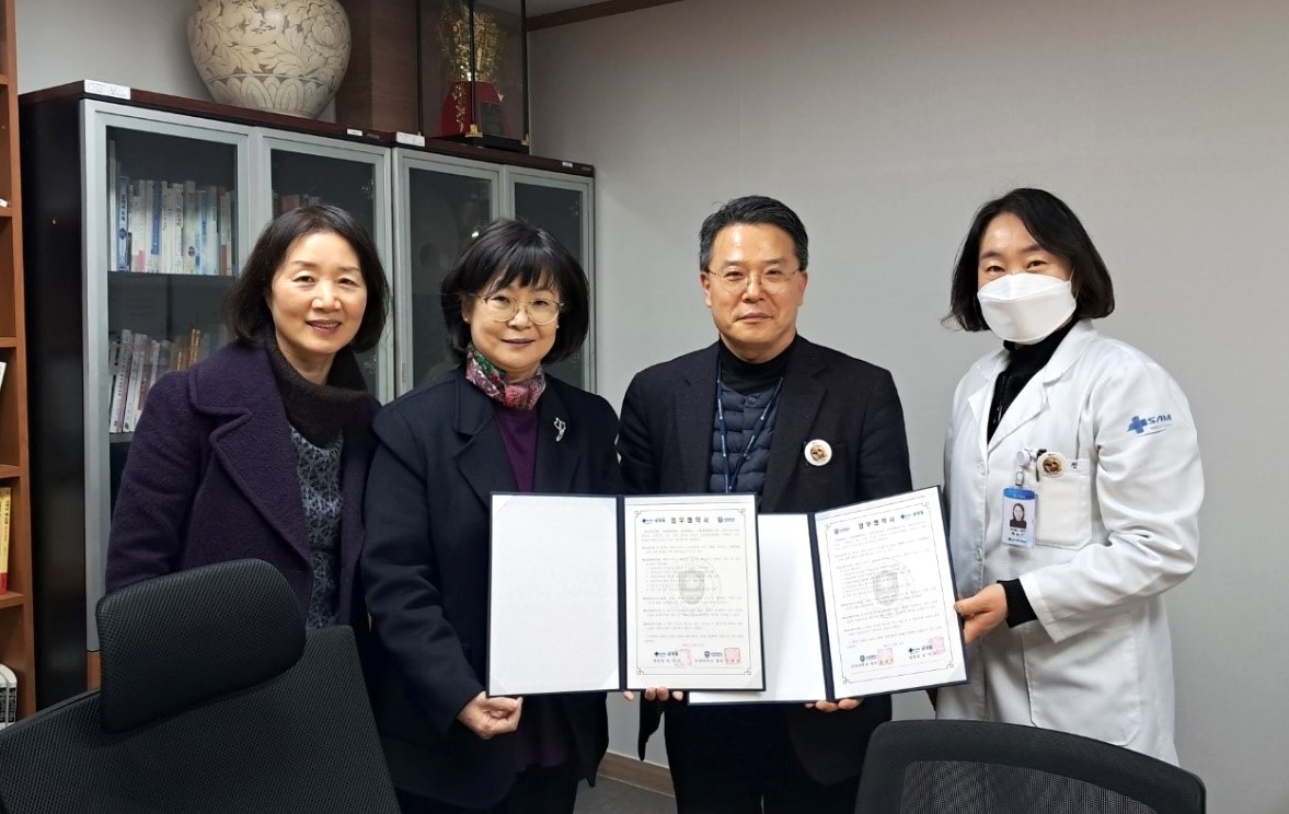 이어 23일 안양시 안양샘병원에서 이경애 학과장과 길복임 교수, 안양샘병원 박상석 행정본부장, 백승진 영양팀장이 참석한 가운데 업무협약을 맺었다.