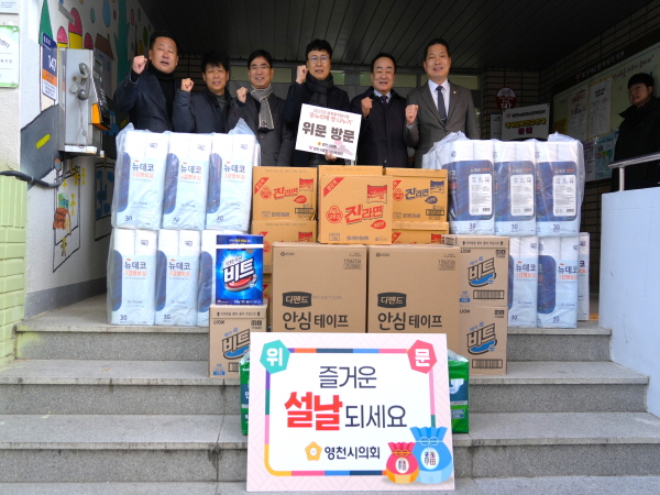 김선태 의장을 비롯한 의원들은 영천시종합사회복지관·나자렛집·마야정신요양원을 방문해 복지 사각지대에서 어려움을 겪고 있는 이웃들을 위한 생필품을 전달했다.