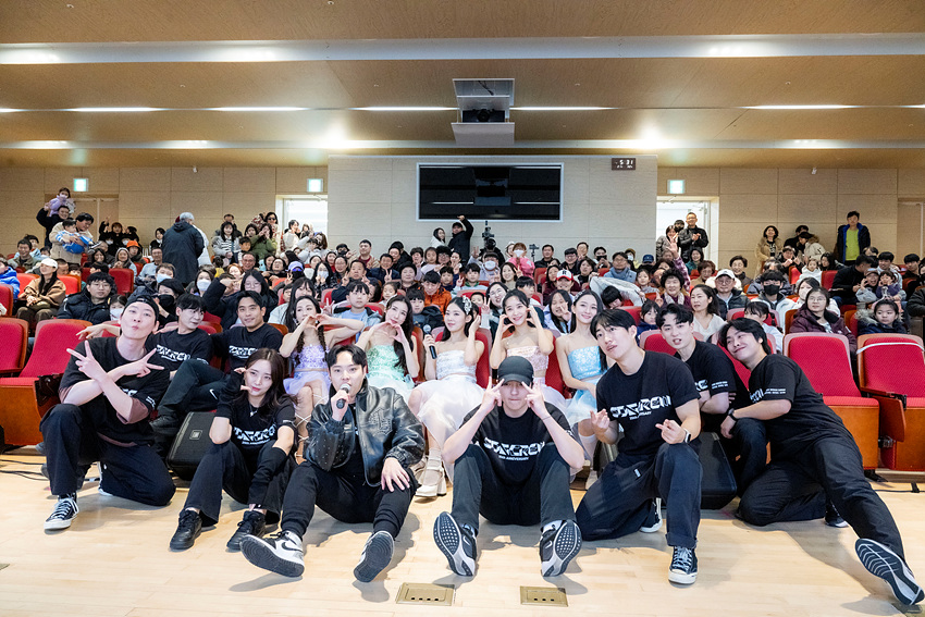 전망대 평화교육관에서 진행된 비보이와 퓨전국악공연 등 참석자 및 관계자들 기념촬영 모습. (사진 = 조이호 기자)